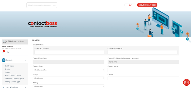 Contact Boss’s user interface