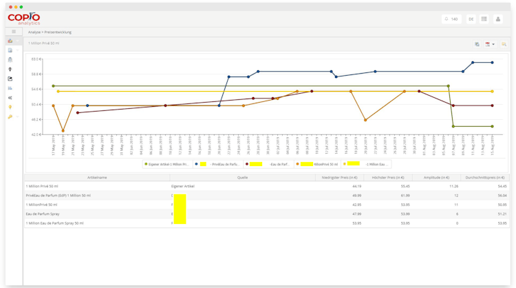 copio analytics can collect data from marketplaces like Amazon and eBay, as well as individual online shops. The platform is optimized for monitoring webshops, which enables meaningful assortment comparison and analysis.