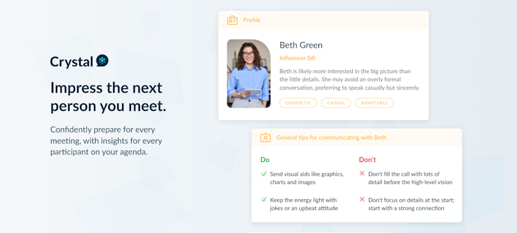 Trusted by thousands of organizations worldwide, including Fortune 500 companies, Crystal offers a comprehensive suite of features designed to enhance professional interactions: