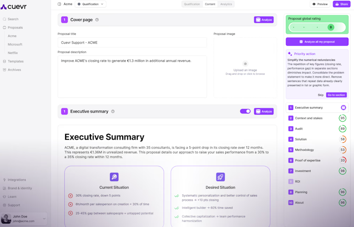 • It offers AI-driven recommendations to optimize proposal quality.