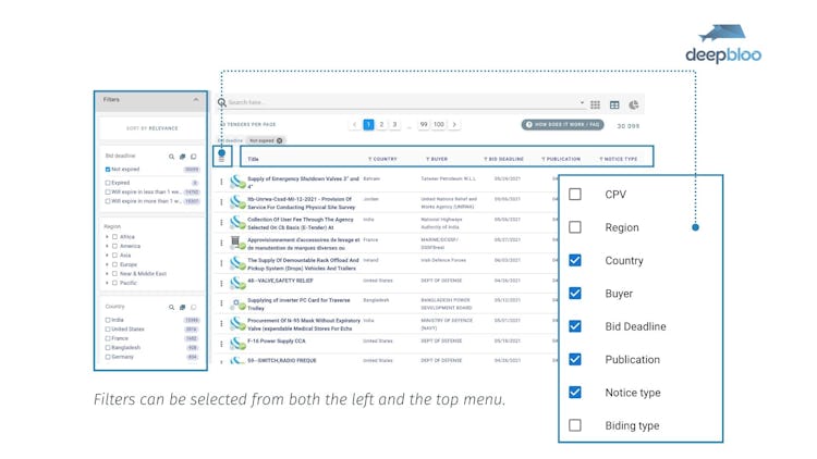 - Improve Business efficiency with 80% Time saver: Find a needle in a haystack through extensive filters and tender deep analysis.