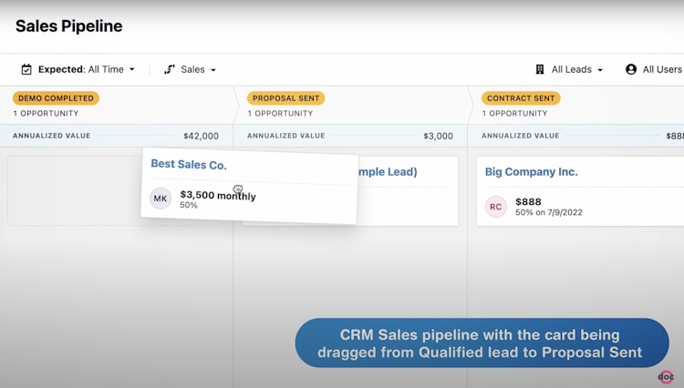 DocSales facilitates integration with various third-party customer relationship management (CRM) systems such as Salesforce, Pipedrive, HubSpot, SharpSpring, ActiveCampaign, and more. Organizations can also automate workflows and store signed documents in a secure vault.