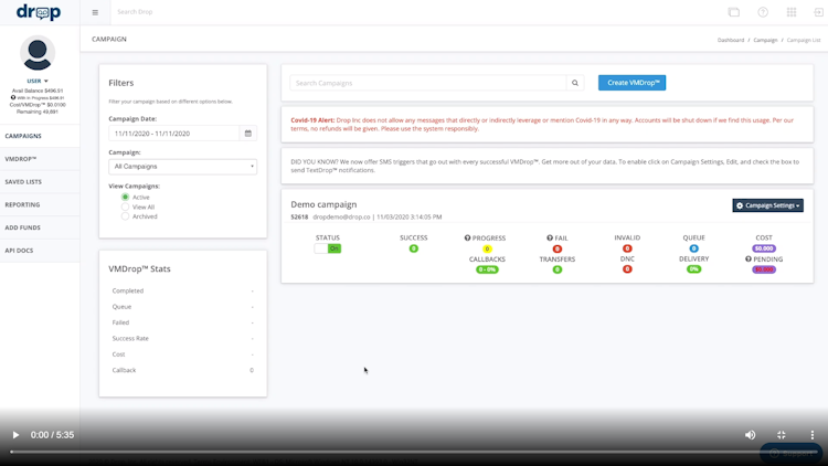 Drop is a cloud-based software that provides call centers with tools to send ringless voicemails or messages to customers, improving marketing operations. Sales executives can schedule campaigns, upload audio files for voicemails, and send them to potential leads according to requirements.