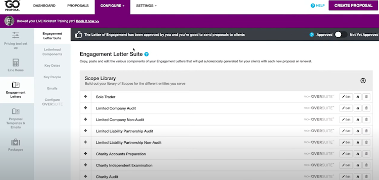 GoProposal is a proposal management solution designed to help accounting businesses engage clients professionally, profitably, and with compliance. The platform offers a suite of features that help streamline the client engagement process, ensuring consistent pricing, professional proposals and renewals, and client and prospect management.