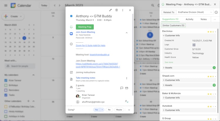 4. Prepare for upcoming sales calls by providing relevant information in your calendar