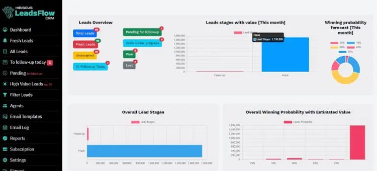 Hibiscus LeadsFlow offers a robust 360-degree dashboard, providing business owners with a detailed view of leads based on their status and associated costs. This valuable insight allows for data-driven decision-making to optimize sales performance. It features the ability to integrate fresh leads directly from a website, bypassing traditional email submissions and contact forms. For larger organizations with dedicated calling teams, the CRM also includes performance monitoring features to efficiently track team activities and follow-ups, ensuring optimal lead conversion and overall productivity.