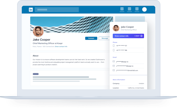 Kaspr retrieves contact information directly from the LinkedIn profile of your prospects.