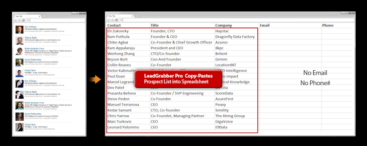 LeadGrabber Pro is a B2B prospecting tool for sales and marketing teams of any size. It can be used to find verified business emails and phone numbers for potential leads using professional network sites. It enables teams to quickly build email and cold calling lists in order to start campaign outreach while increasing sales conversion opportunities.