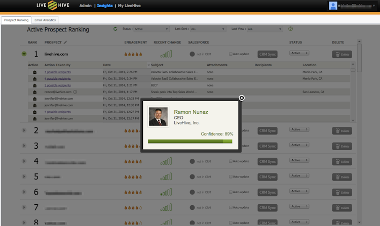 LiveHive sales acceleration platform automates sales follow-up to increase buyer engagement insights that power repeatable sales processes. With automated content-sharing capabilities and deep analytics, LiveHive helps sales reps deliver a more effective follow-up, better understand buyers’ interests, generate a top prospect ranking list, and deliver a “health check” of sales pipeline.
