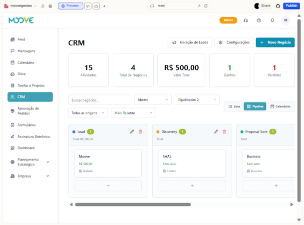 Moove is an all-in-one business management platform designed for companies that want to centralize their core operations in a single system.