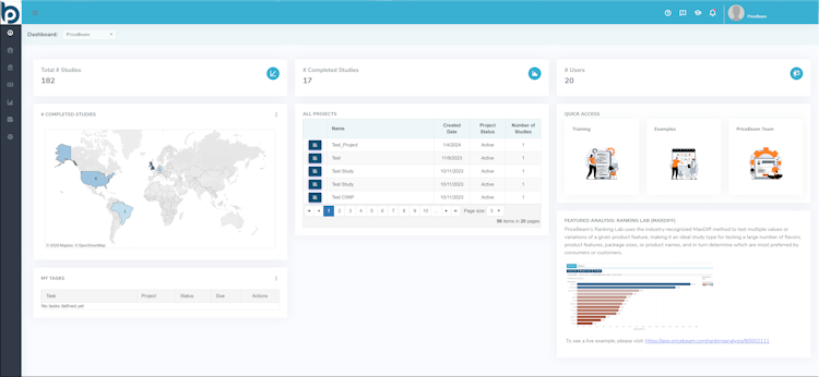 Key features of PriceBeam include research creation, benchmarking, data collection, quality control, and reporting. Businesses can utilize the platform to create projects, conduct online surveys across new segments or markets, and measure consumers' willingness to pay for products or services. Plus, users can track the entire survey lifecycle, from launch to completion, by logging into their personal accounts.