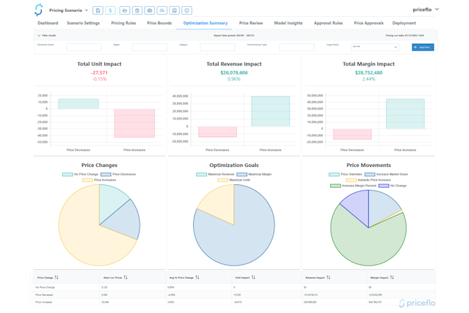 The fastest price optimization and pricing management solution available that allows companies to tune strategies to maximize revenue and margin objectives.
