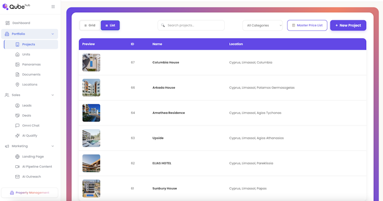 The AI Marketing component automates content creation workflows by transforming photographs into video segments, enhancing visual materials and refining layout designs. It generates project landing pages in minutes and distributes sales materials, including offers, price lists and brochures, from a consolidated database. The Interactive module features three dimensional sales maps that visualize project layouts and unit availability through immersive presentations designed to convert passive browsing into active engagement. The Property Management platform includes a resident application for billing and support, an omni channel communication hub and facility management tools to extend system utility beyond the initial sales phase.