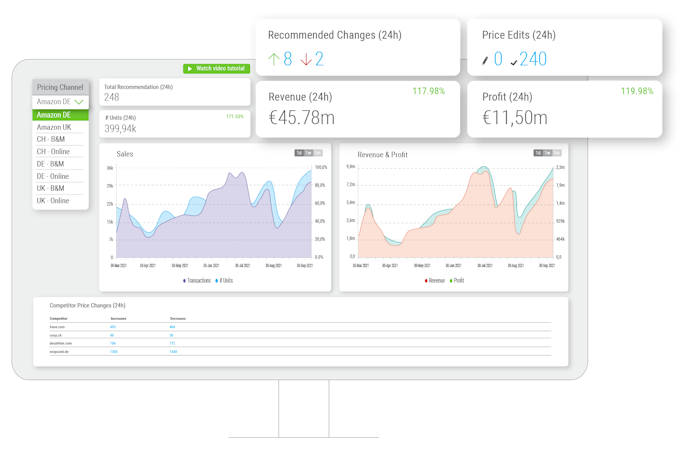 The platform balances AI and business rules to recommend the optimal price - per product, per channel.