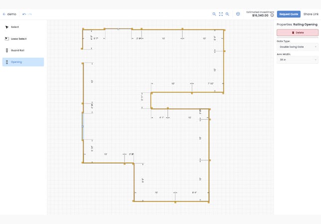 Railing Designer is a custom design tool where your products and building rules are built into your software. Housed in a browser, Railing Designer offers a user-guided design process with instant access to cost estimations, parts lists and breakdowns, 2D and 3D visualization specific to your products, and integrations with your CRM, ERP, and other systems. From railings, balustrades, fencing, guard rails and railing systems to fall safety platforms, Railing Designer was created to be customized for your business to streamline your design and selling process.