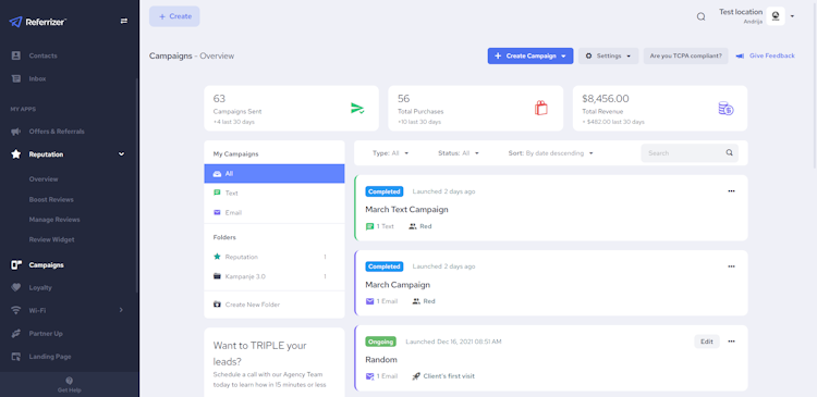 Referrizer is a lead management and marketing automation software that helps businesses capture leads, track customer communication, manage referrals, handle reviews, and more on a centralized platform. It allows staff members to utilize the built-in email marketing tools to manage promotions, loyalty programs, customer segmentation processes, marketing campaigns, and overall customer relationships.
