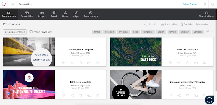 With Seidat, staff members can create, edit, present, share, manage, analyze, and electronically sign their sales material. It also provides API to facilitate integration with third-party applications.