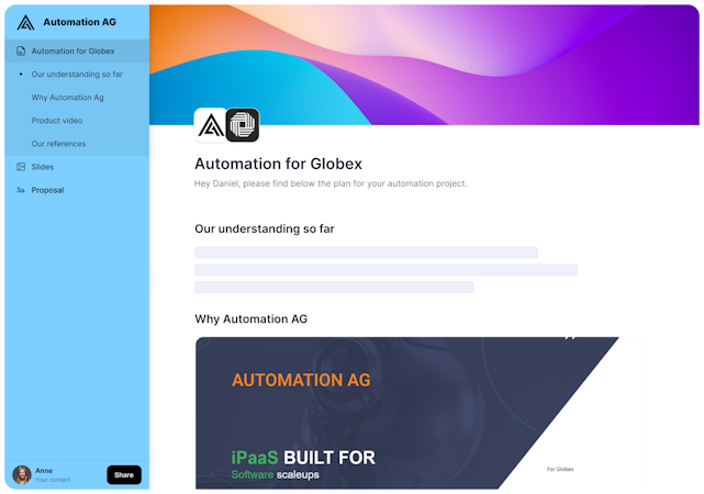 Stageset enables B2B vendors to communicate with customers in a systematic manner that they can monitor and return to throughout the purchasing process. With the use of templates, a digital sales room and joint action plans can be created to manage each offer separately. Follow-up emails are replaced by digital sales rooms, which also make customer contact trackable and let the consumer drive the offer if he's ready to do so.
