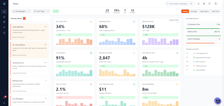The platform uses a four-stage workflow beginning with bulk lead import through CSV files, spreadsheets or API integration. Once leads are imported the AI initiates personalized SMS dialogues via Twilio infrastructure to assess qualification criteria including budget confirmation, decision-maker status and timeline information. A proprietary fifty-point scoring model evaluates each interaction in real time and when a lead achieves hot status the system notifies the sales team for handoff to ensure that human representatives engage only with prospects who meet predefined thresholds.