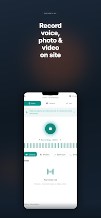 VoxTrade lets tradespeople create professional quotes on site — by speaking, not typing. Walk the job, describe the work by voice in any of 100+ languages, and get a priced, itemised quote ready to send before you leave. Record a video walkthrough and the AI identifies work needed, estimates costs, and builds the quote automatically. Upload architect plans or photographs and get quotes generated from those too.