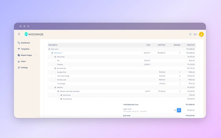 Elevate your furniture manufacturing processes with Woodwize. Designed specifically for furniture manufacturers, Woodwize streamlines your business operations. With features like accurate costing templates, detailed costing, professional quotations, and effortless invoicing, you can gain confidence in your cost estimation and negotiation. The software's comprehensive Bill of Materials (BOM) functionality enables efficient procurement and optimized plywood usage, reducing wastage and costs.