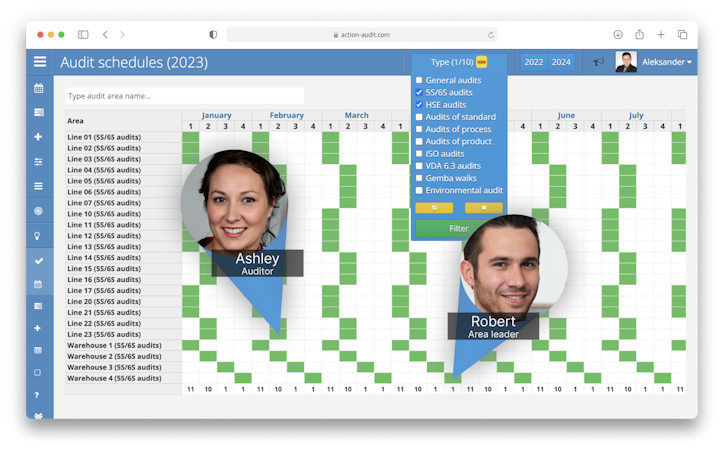 During the audit process, administrators can add photos and descriptions of observed non-compliances, as well as review the results from previous audits. Action Audit includes a built-in knowledge base with checklists for common audit types such as 5S/6S, Layered Process Audits (LPA), Gemba Walk, Safety Walk, and ISO standards like ISO 9001, ISO 14001, and ISO 45001. Furthermore, the database provides templates for other frequently used organizational processes, such as the Deming Cycle (PDCA), 8D Complaints Handling, and the 5W2H problem description method.