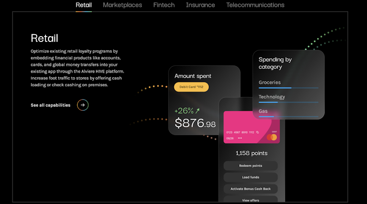 Alviere Hive is a banking software that offers FDIC-insured banking services to customers and processes payments via credit cards, ACH transactions, and more. Supervisors can create customizable branded cards and streamline cross-border transactions in multiple currencies.
