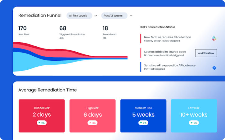 The code risk engine analyzes risk with context by learning all application code & infra-as-code, developer expertise, combined with data from API gateways, communication & security tools, ticketing systems & findings from pen-tests, and compliance reviews. Teams can gain visibility into all applications across code, infrastructure, devs & business impact before production. It allows administrators to prioritize & manage only the risks that matter across the SDLC, from design to production.