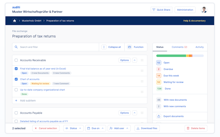 Auditi is a PBC request list platform that transforms the way audit, financial and legal firms interact and collaborate with clients. The solution helps create lists and templates, add clients to receive documents, set timelines and track progress, and communicate in one place.