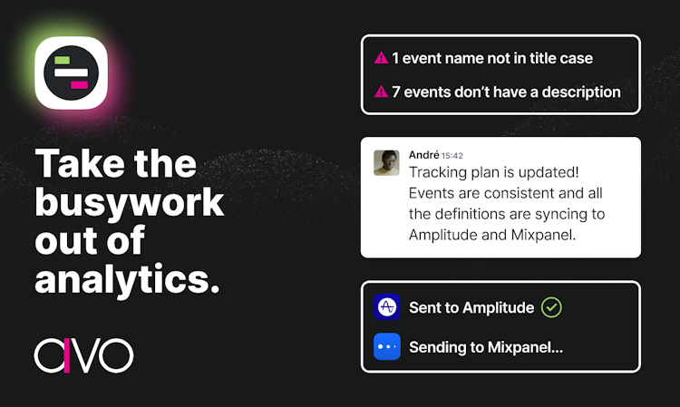 Avo is the self-serve analytics governance, changing how PMs, devs, and data scientists collaborate to plan, implement and verify their product analytics. What used to take Patreon 1-4 days for every feature release, now takes 30-60 minutes.