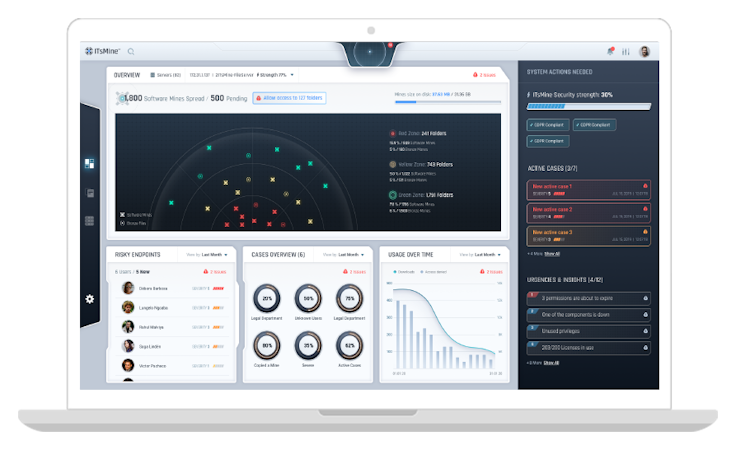 Increase employee awareness in data protection with the integrated Data Security Awareness Training Campaigns. The employee training educates on the safe use of company data with easy to follow campaigns and dashboard metrics showing progress. ITsMine's software brings data protection to enterprises in a clear API-based solution.