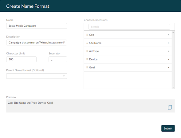 * Bulk create hundreds of standardized names and UTMs in a few clicks to speed up workflow