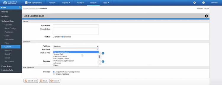 Carbon Black App Control’s user interface