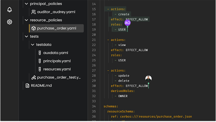 Define all policy as human-readable definitions held centrally and read by all the Cerbos instances. This way any updates or changes to authorization rules can be made once and then all services that call Cerbos for permissions checks get the updated result. No code changes or releases are needed.