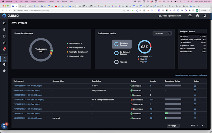 Clumio’s user interface