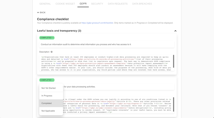 It lets answer common GDPR questions from prospects and customers through a self-service compliance portal. It allows users to showcase security and data protection practices. Managers can automatically streamline subject access requests.