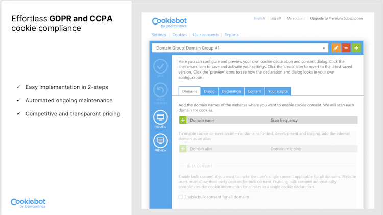 Cookiebot CMP's key features