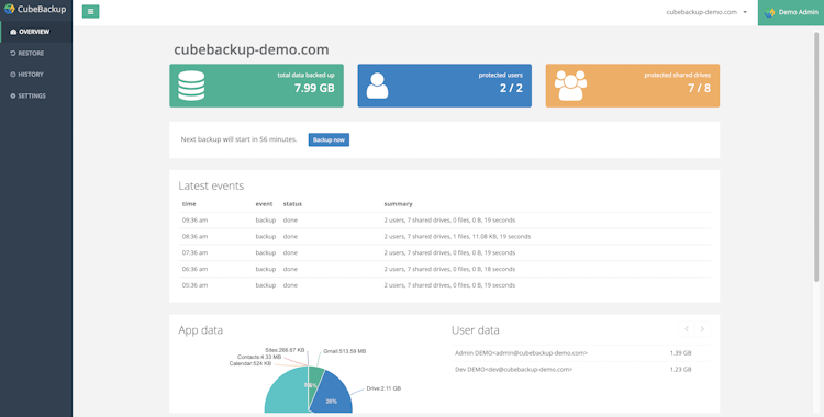 The software offers features such as file and folder version history, granular search, GDPR compliance, data restoration and many more.