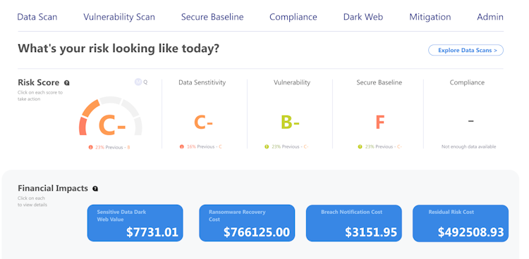 - Risk Monetization - View the potential costs of breaches, ransomware attacks, and the value of sensitive and business-critical data in dollar amounts for improved cybersecurity decisions and resource allocation.