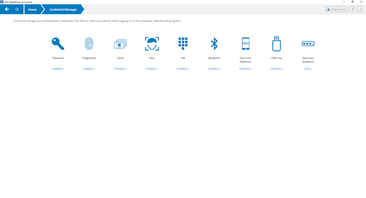 DigitalPersona’s user interface
