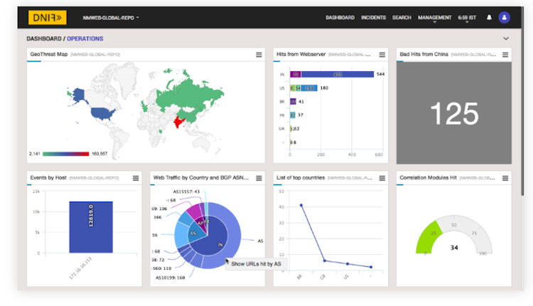 DNIF HYPERCLOUD is a cloud-based security information and event management (SIEM) solution, which assists small to large organizations with threat detection and incident response. Key features include data parsing, user behavior analysis, workflow automation, data recovery, and performance metrics.