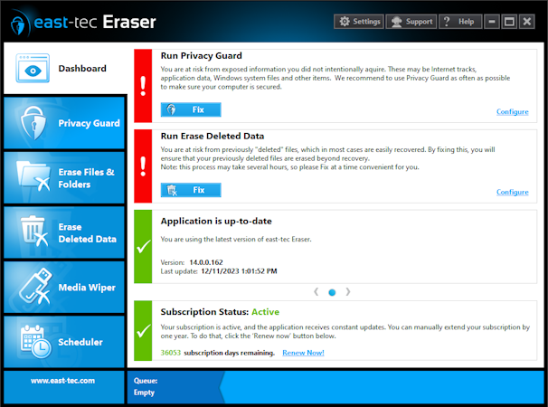 East-Tec Eraser securely deletes all traces of Internet and computer activity, as well as evidence left by over 350 third-party applications. With east-tec Eraser, you can erase not only files from your hard drive but also from removable devices like USB drives, SD cards, and external hard drives. You can also erase unused files and improve your PC's performance by freeing up disk space.