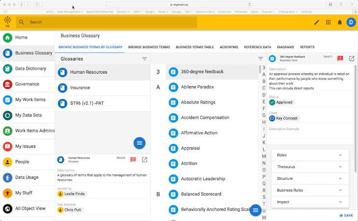 Key features of erwin Data Governance include process management, data cataloging, data discovery, and access control. Using the centralized data governance framework, teams can gather and store data in a unified catalog based on individual business requirements. With core data management capabilities, the solution enables enterprises to scan metadata from multiple sources and ensure operational efficiency in terms of code generation and data transformation projects.