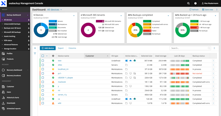 exabackup is a cloud backup software that helps businesses securely store data with end-to-end encryption. The platform offers various features, including backup for Windows, Linux & macOS, storage in Germany, protection for workstations, central management interface, bare metal restoration, and virtual disaster recovery.
