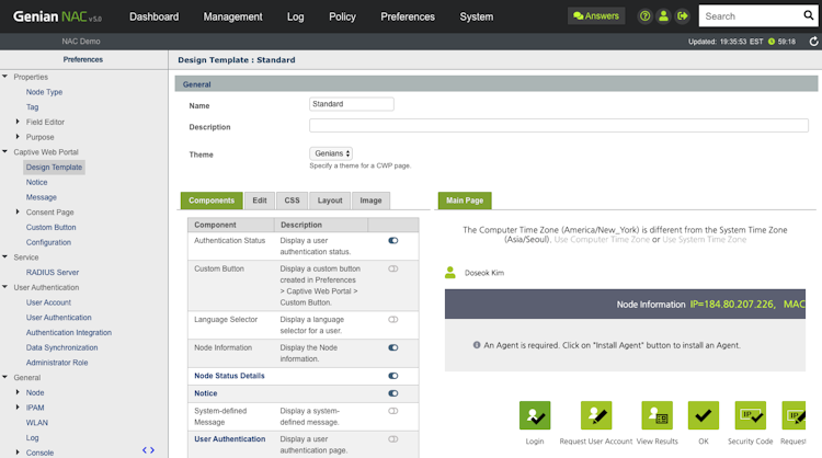 Genian NAC lets businesses detect service set identifiers (SSIDs) and hidden, misconfigured, or rogue access points (APs) to manage wireless connection profiles. Operators can also check password validation, configure security settings for windows, and control antivirus software settings in a centralized dashboard.