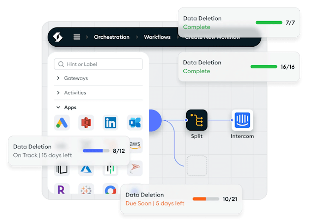 - Streamline DSR requests with automation: Ketch simplifies and automates data subject rights (DSR) request processing, allowing businesses to efficiently handle access, deletion, and modification requests across all integrated systems.