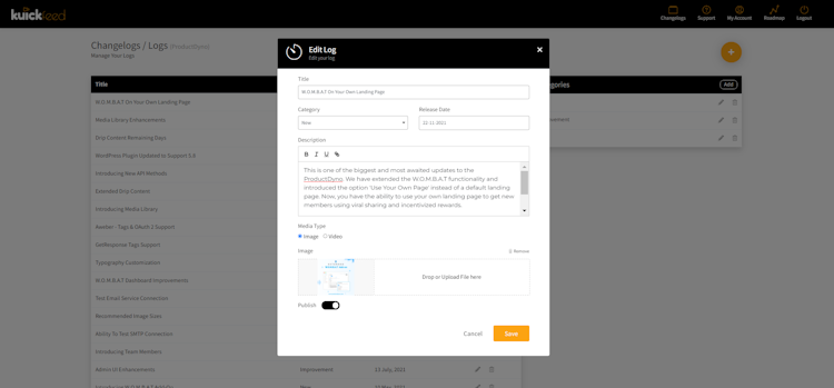 KuickFeed is a changelog management software that streamlines the process of creating and publishing product updates for audience. It targets software companies, SaaS businesses, agencies, and product teams who need to communicate changes and new features to users.