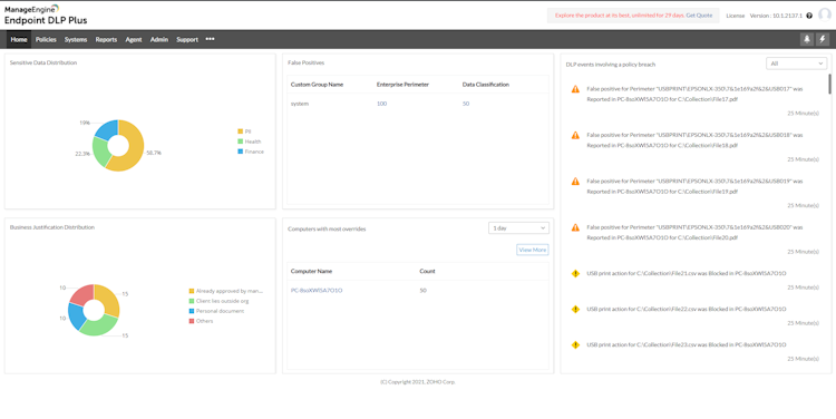 ManageEngine Endpoint DLP Plus’s user interface