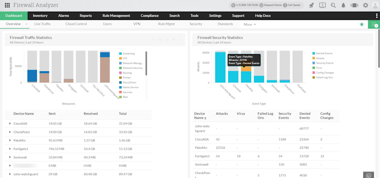 Firewall Analyzer is a vendor-neutral log analytics and firewall rule management software that provides in-depth visibility into your organization's network security environment. Here are some of the features that set Firewall Analyzer apart:
