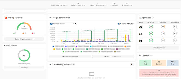 MSP360 Managed Backup is a centralized, multi-platform backup solution for MSPs. It offers automated backups, compliance-ready security, white-labeling, and seamless integration with MSP360 RMM and PSA tools. With flexible pricing and vendor-neutral storage support for Amazon S3, Microsoft Azure, Wasabi, Backblaze B2, and more, it enhances data protection while optimizing costs.